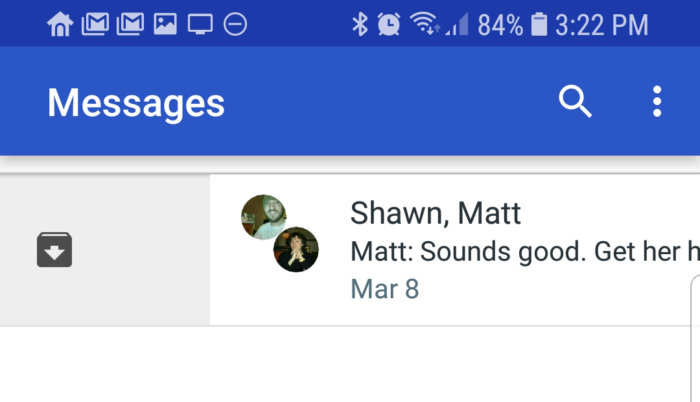 Después de unos meses, su lista de mensajes de texto probablemente será un desastre, plagada de hilos que no ha tocado en mucho tiempo. Los mensajes de Android le permiten deshacerse de ellos sin deshacerse realmente de ellos. Puede archivar hilos viejos para sacarlos del camino, pero aun así restaurarlos si es necesario.