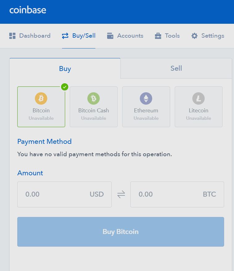 Como puede ver, es tan sencillo como hacer clic en la pestaña «Comprar» si desea comprar y en «Vender» si desea vender. Usted selecciona qué moneda está comprando / vendiendo y qué método de pago (su cuenta bancaria o tarjeta de crédito) desea usar.
