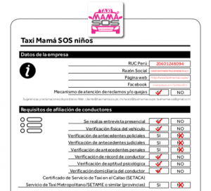 La app Taxi Mamá SOS niños es la única a la fecha que realiza «entrevista presencial a los conductores» pero que sin embargo no solicita a los conductores documentos como los antecedentes.