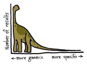 Hay un punto ideal para elegir palabras clave de comercio electrónico. No querrás elegir algo demasiado amplio (como ‘camisetas’) porque serás aplastado por la competencia. Pero no debes elegir algo demasiado nicho (como «camisetas verdes con cuello polo con rayas blancas») porque simplemente no hay suficientes personas que lo busquen.