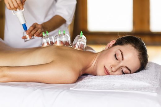 Las ventosas usan vasos de vidrio o plástico (estacionarios o deslizantes) sobre la piel para crear un vacío que atrae la sangre hacia la superficie de la piel. Se siente como un masaje. Pero deja una serie de contusiones circulares que pueden durar un tiempo. Es útil para el control del dolor, los trastornos respiratorios y el aumento de la circulación. Se cree que la ventosa acelera el proceso de desintoxicación. Además, descarta lo que el cuerpo no necesita y reduce la hinchazón y la inflamación.